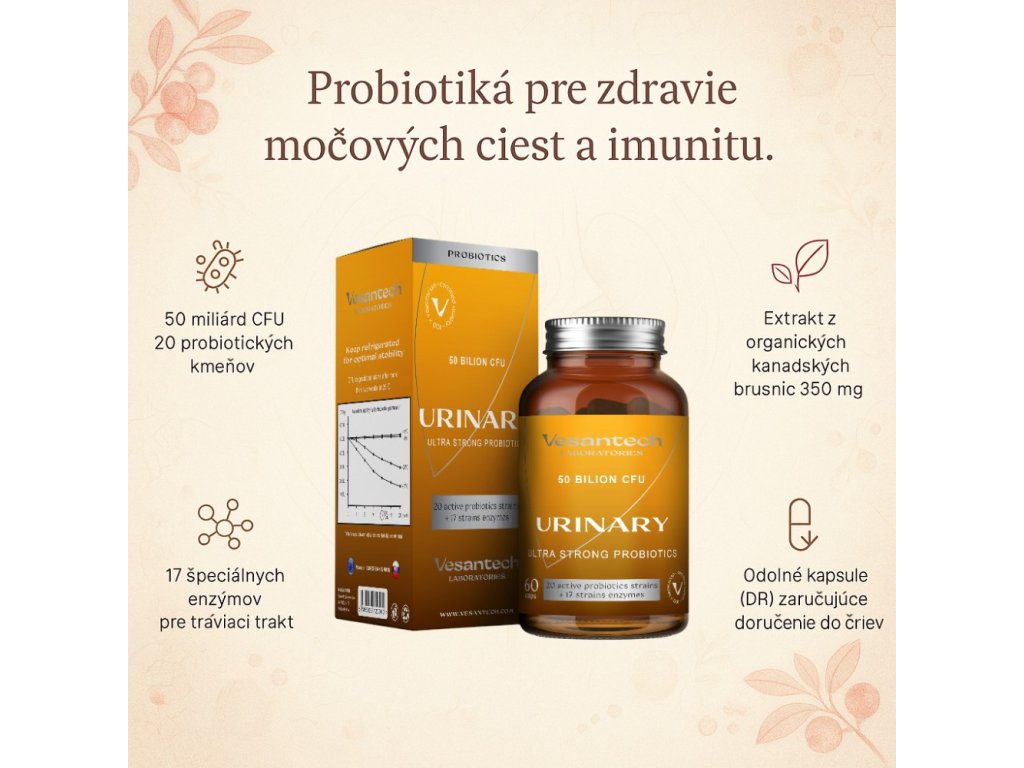 Vesantech Probiotiká URINARY, zdravie močových ciest a imunita, 50 mld CFU, 60 kapsúl