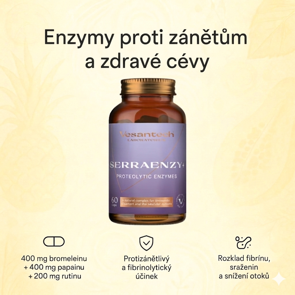 Tyto enzymy mají také protizánětlivé a proteolytické účinky, podporují rozklad bílkovin a fibrinu a snižují otoky, což je velmi důležité po operaci a v případě trombózy.