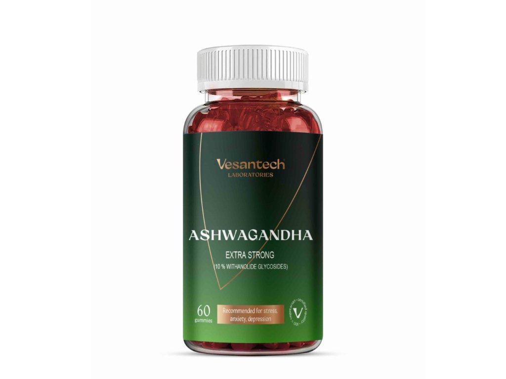 Vesantech Gummies Ashwagandha jsou chutné a praktické gumové bonbóny s extraktem z ashwagandhy, které obsahují nejvyšší koncentraci bioaktivních látek na trhu. Ashwagandha (Withania somnifera) je známá jako silný adaptogen, který pomáhá tělu lépe zvládat stres, zlepšuje psychickou rovnováhu, kognitivní funkce, paměť a soustředění.