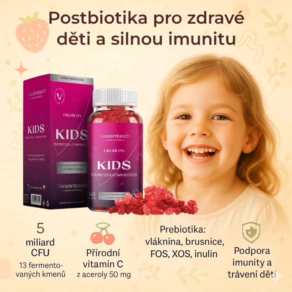 Často kladené otázky k produktu Postbiotika Vesantech Kids Gummies